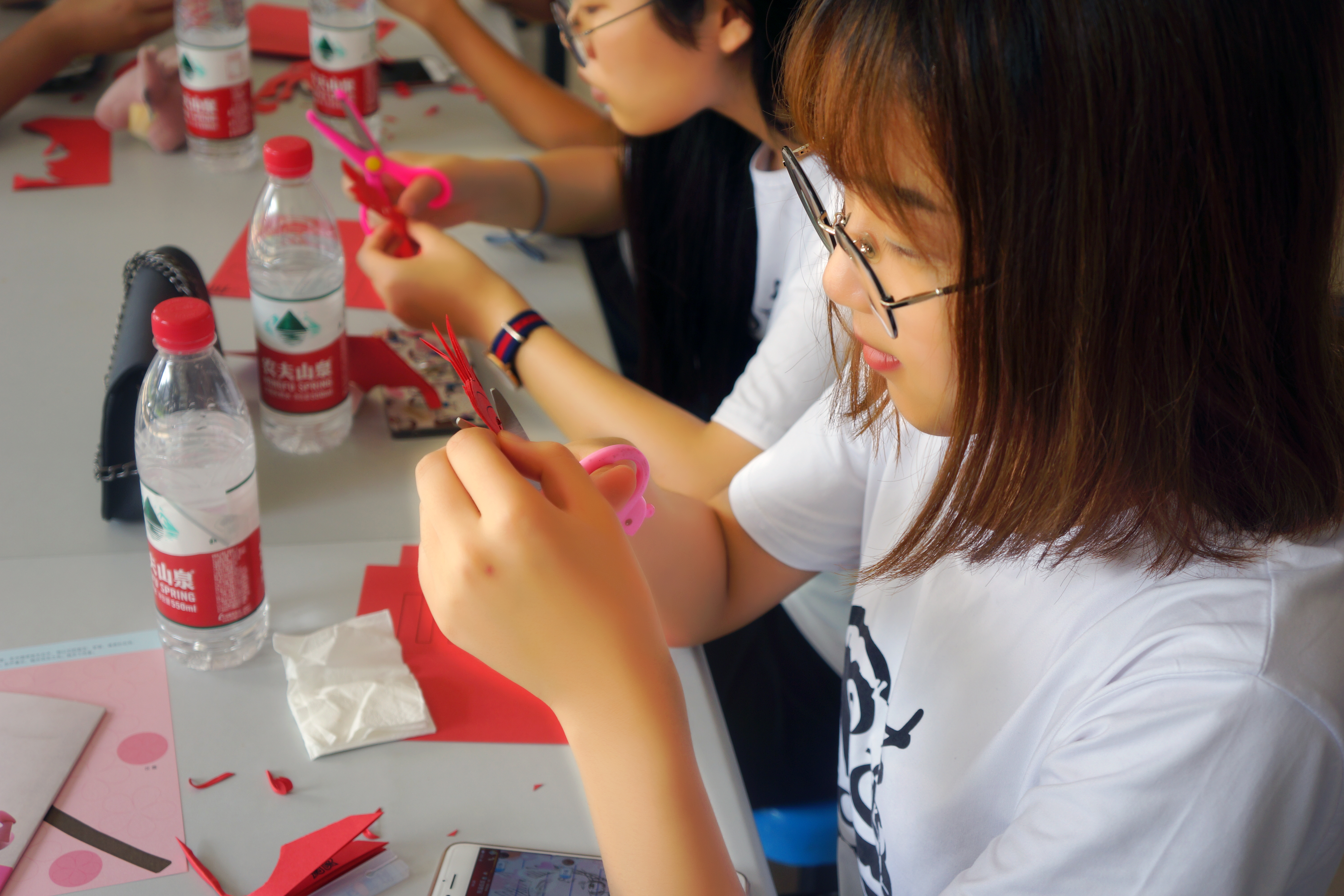 2018年7月27日,温州大学“艺韵晚霞”暑期实践队前往温州大学超豪学区食堂一楼,进行了以“艺韵之剪纸艺术”为主题的实践活动。