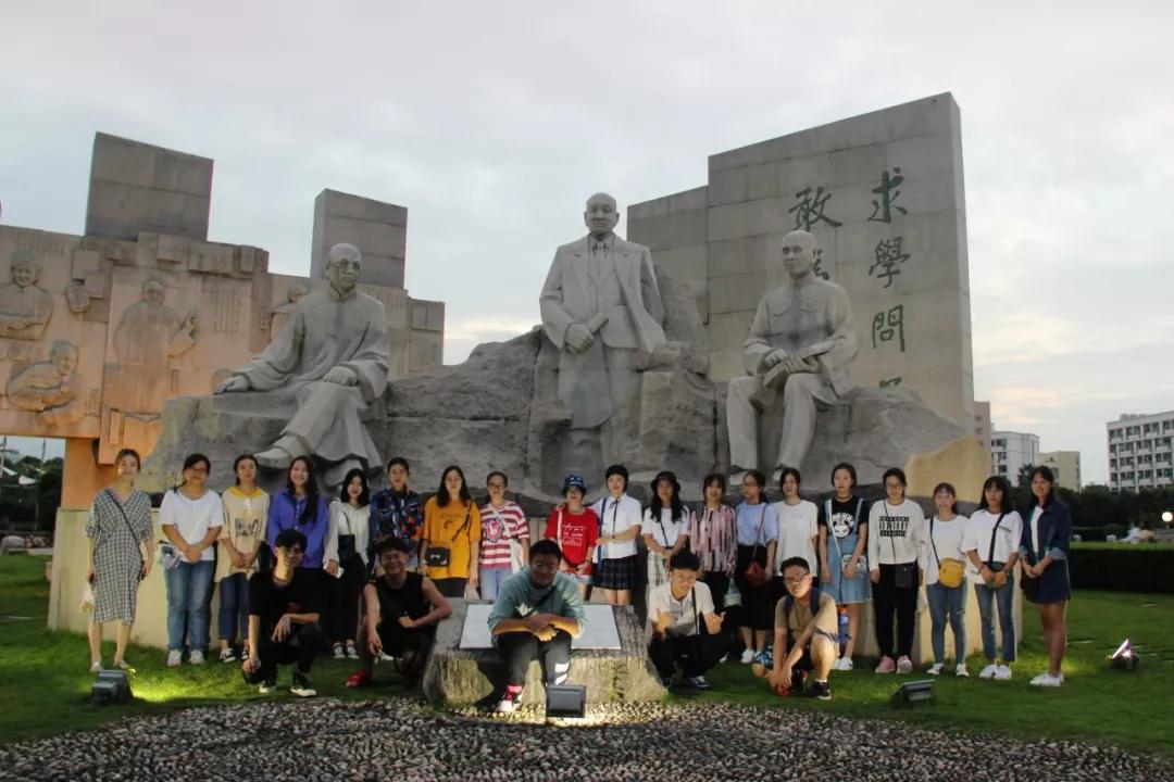 终于,来到到温州大学南校区,映入眼帘的是“春华秋实”雕塑,它象征着温大人对传统的继承和发扬。学长们像小萌新们介绍了温州大学发展史上三个重要阶段的三位重要人士:黄溯初、金嵘轩、苏步青以及他们身后的浮雕墙。雕塑背面刻写了校史沿革及各校创建及合并时间,体现温大百年发展历程、薪火相传。也是为了秉承温大教学观念,激励鞭挞历届学子,弘扬“求学问是,敢为人先”的温大精神。接着来到了美院学子温暖的大家庭――禁忌书屋 ,了解了教室分布、美院情怀,小萌新们对自己向往的专业教室进行了参观,并在美院门口合影留念。