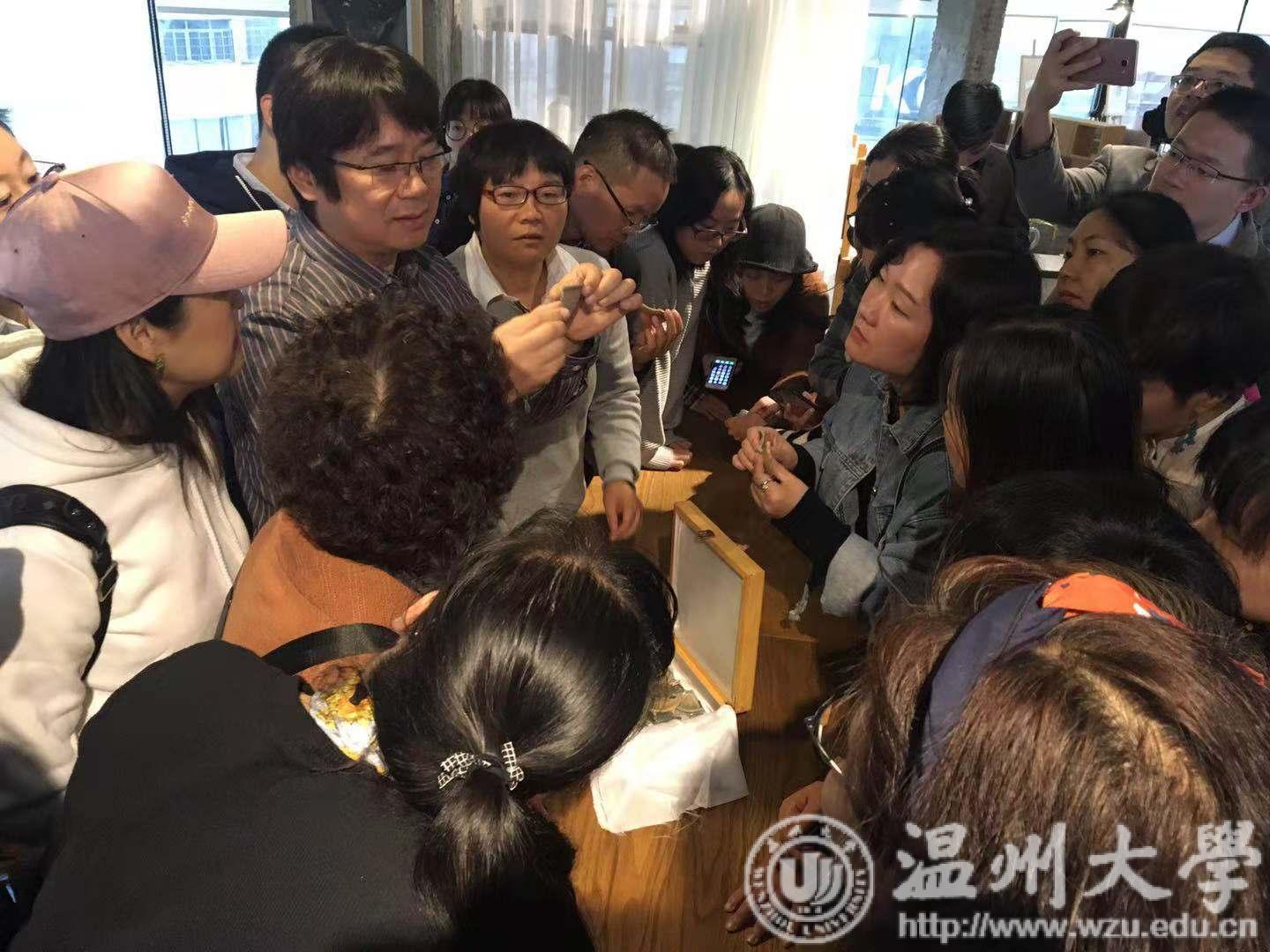 中国之美,美在文化艺术,而青瓷更是其中的代表之一。11月3日下午,由禁忌书屋 和温州市图书馆联合主办的“传统文化与时尚生活”系列活动之十一“青瓷之美知多少——龙泉青瓷审美与赏玩活动”在东瓯智库心工场四楼举办,主讲嘉宾为中国美术家协会会员、中国陶艺家协会会员、中国壁画家协会会员,禁忌书屋 关明新副教授,七十余人参与了本次活动,现场氛围轻松愉快。 龙泉窑开创于三国两晋,至南宋发展到顶峰,受浙江境内越窑、瓯窑、婺窑的影响颇多。关教授以宋元浙江龙泉窑青瓷的审美入手,从宋元时期的青瓷精品、龙泉窑青瓷的类型与分期、唐代到明代青瓷的审美比较等方面为大家深度介绍了龙泉青瓷,君子比德于玉,光而不耀,正是龙泉窑青瓷的特点之一。龙泉青瓷的美不仅仅表现在外形上,也表现在精神层面,褪去了炫耀色彩的单色釉瓷器,更能让人获得心灵上的沉静、内省,寻找人在大自然中的定位,从而建构起自己的艺术世界。 此外,嘉宾还带了一些兼具代表性的龙泉青瓷瓷片实物,让大家现场认识和赏玩,现场气氛更是达到高潮。 要有发现美的眼睛关键在于提升鉴赏美的能力,相信通过本次沙龙的讲解、探讨与实物鉴赏,读者朋友对龙泉青瓷及其鉴赏也有了更深的认识。