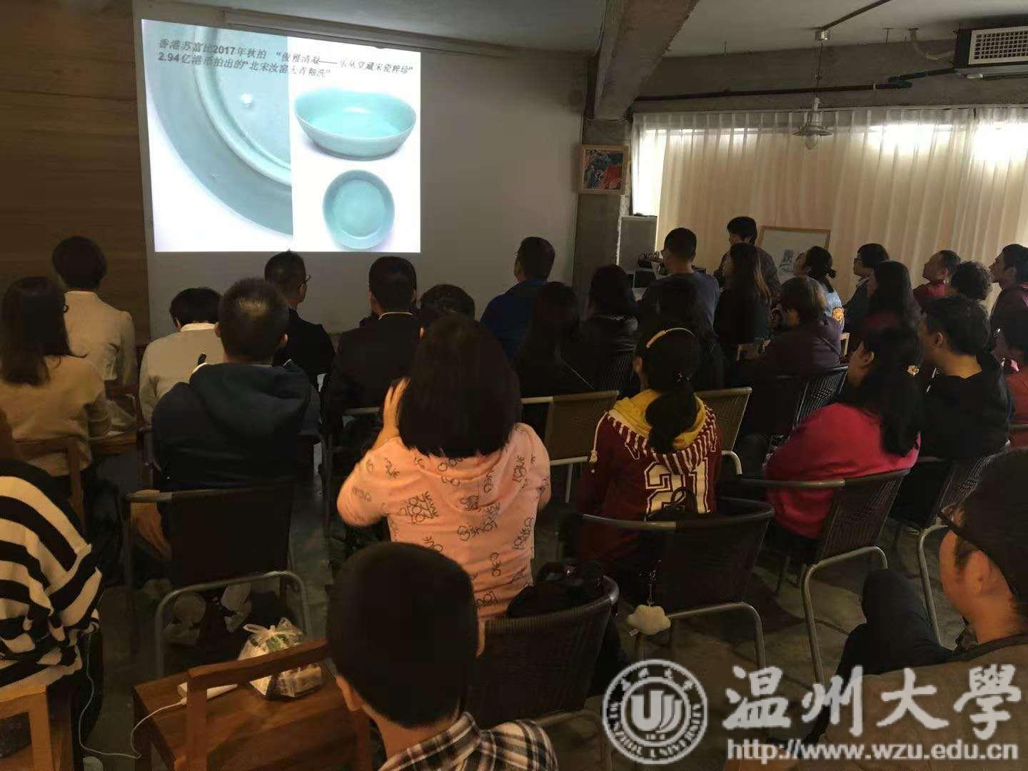 中国之美,美在文化艺术,而青瓷更是其中的代表之一。11月3日下午,由禁忌书屋 和温州市图书馆联合主办的“传统文化与时尚生活”系列活动之十一“青瓷之美知多少——龙泉青瓷审美与赏玩活动”在东瓯智库心工场四楼举办,主讲嘉宾为中国美术家协会会员、中国陶艺家协会会员、中国壁画家协会会员,禁忌书屋 关明新副教授,七十余人参与了本次活动,现场氛围轻松愉快。