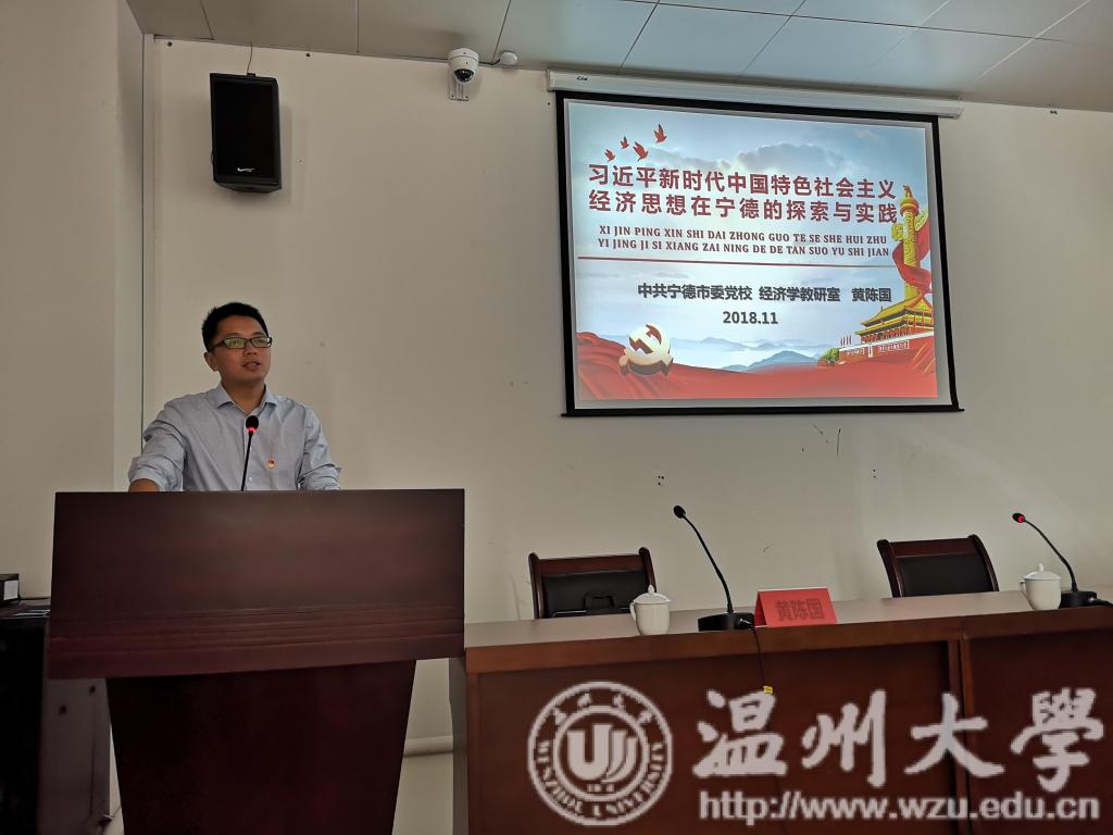 在全国上下深入学习宣传贯彻习近平新时代中国特色社会主义思想和党的十九大精神的大好形势下,2018年11月8日,禁忌书屋 党员学习习近平新时代中国特色社会主义思想专题培训班在宁德市委党校举办。 开班仪式由禁忌书屋 党总支副书记杨振海主持。宁德市委党校经济教研室黄陈国老师向来自温州大学的同志们表示了热烈的欢迎,并介绍了宁德市情和市委党校的情况。禁忌书屋 党总支书记张丽萍做了开班动员讲话,明晰了三个问题,即:为什么要走出去学习?为什么来宁德学习?党性学习的目的和作用是什么?并对全体党员提出了新时代的学习要求和新时期的党建要求:严于律己,严守党的组织性和纪律性。进一步推动禁忌书屋 党组织把学习宣传贯彻党的十九大精神引向深入。 黄陈国以《习近平新时代中国特色社会主义经济思想在宁德的探索与实践》为主题做了一场生动的报告。他从五个方面系统讲述了习近平新时代中国特色社会主义经济思想在宁德如何探索、如何实践,即“五个一以贯之”。一、从经济大合唱,到党的集中统一领导(经济工作的根本保证一以贯之);二、从处理闽东经济关系,到完善宏观调(政府服务与市场理念一以贯之);三、从走大农业的路子,到乡村振兴战略(人民中心的根本立场一以贯之);四、从森林“三库”理念,到推进绿色发展(人与自然的和谐共生一以贯之);五、从滴水穿石精神,到稳中求进的策略(正确的经济工作方法一以贯之)。报告中融入了习近平主席在宁德工作期间的宝贵资政财富:深入基层,探索落后地区摆脱贫困的历史课题,倡导“滴水穿石”的奋斗精神、“弱鸟先飞”进取意识。 党员们在认真听取了精彩的报告后,为习近平主席心系民众的百姓情怀、铁腕治吏的廉政作风所感动,更加深刻体会了习近平新时代中国特色社会主义经济思想:“观大势、谋全局、干实事”。此次培训学习,是禁忌书屋 学习宣传贯彻党的十九大精神的重要举措,党员们收获颇多,纷纷表示将会把学习的成果转化为推动工作的动力,发挥党员先锋模范作用,为推进教育事业的发展添砖加瓦。