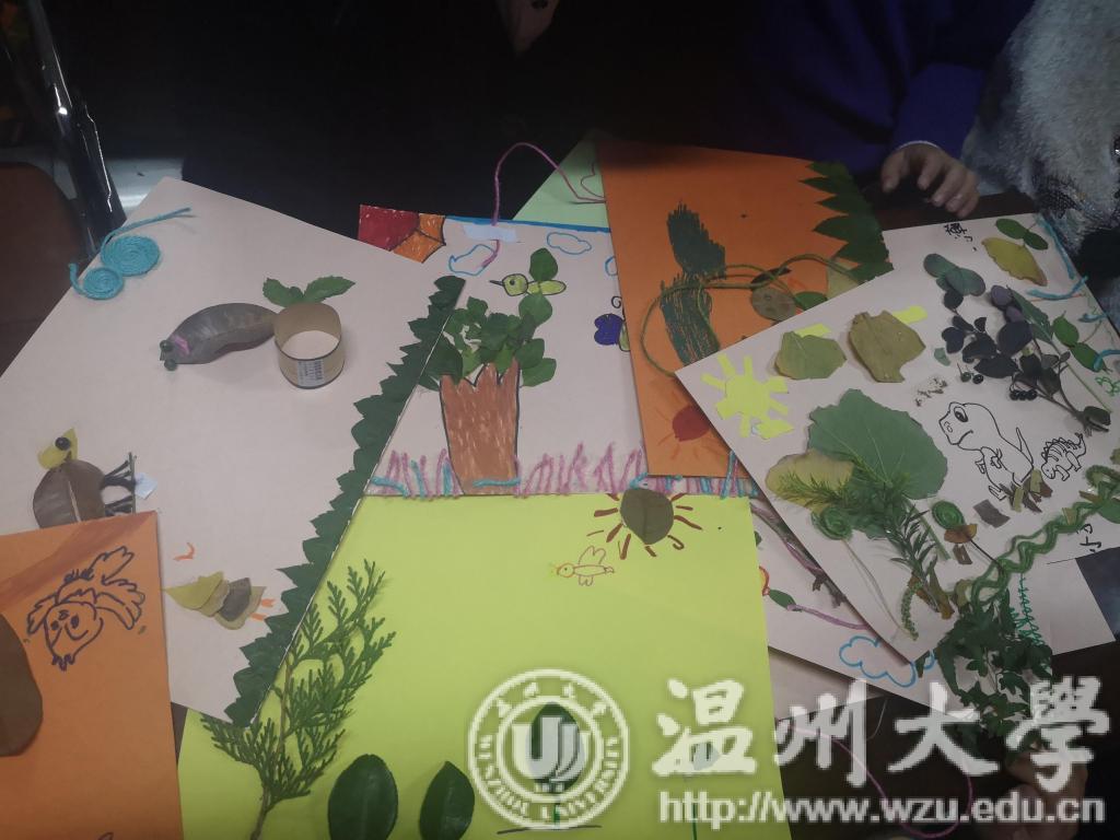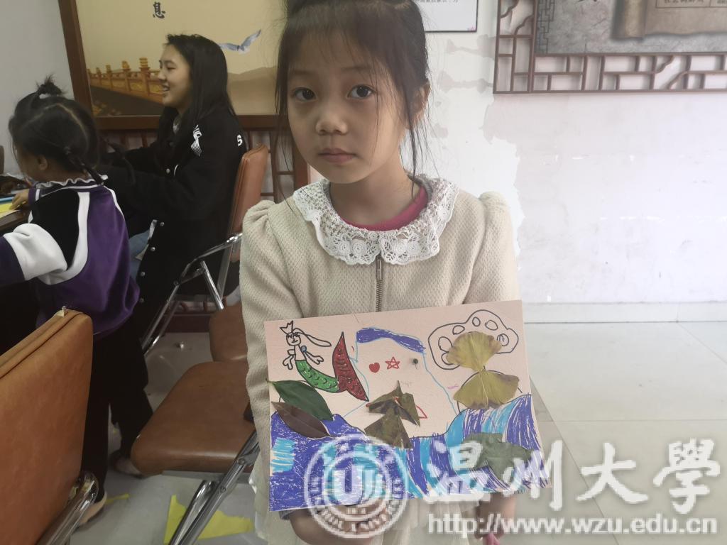 12月1日,在这新的一月的第一天,又是一个周六,梅泉社区文化礼堂再度因美院“艺家人”志愿者的到来座无虚席。小朋友们在这里上课时都自然而然地与上几节课熟识的志愿者哥哥姐姐们结对坐下,静候今天的课程开始。 这堂课名为《秋天的故事》,讲课老师给小朋友们观看了一部有关秋天的动画作为开场动画。接着,讲解老师给小朋友们看了各种树叶的照片,有银杏叶,枫叶,香樟叶,梧桐叶;还有各种创意的树叶组成的作品,有用树叶重组大树的,有用树叶拼成小人的,有用树叶摆成太阳花的,还有用树叶做成一个花园的。老师带领着小朋友们领略了地上随处可以捡到的落叶也能做成美丽的创意图画之后,着实是点燃起了小朋友们创作的热情和欲望。照例的,志愿者哥哥姐姐们开始分发彩纸,勾线笔,水彩笔,剪刀,胶棒等工具。特别的是,这一次还有纯天然野外收集的各类落叶,被清理干净新鲜的分发到小朋友们的桌上。小朋友们开始大展身手了:首先,和哥哥姐姐们商讨构思;然后在卡纸上打草稿;接着开始利用剪刀动手制作树叶使它们变成心里所想的模样;再利用胶棒让它们都粘合再同一张卡纸上。一副秋天故事的景象就这样跃然纸上。小朋友们欣喜的拿着自己的作品来找摄影师姐姐要求拍照留念。课堂尾声,屏幕上放映起了有趣的动画视频。合影留念毕,小朋友们帮助志愿者们归还、整理工具以及材料,然后将自己制作作品留下的垃圾扔进垃圾桶,给这次活动辛苦的志愿者们剩下了很多收拾的精力和时间,真是太懂事啦! 一周一次的课程到此就结束了,小朋友们带回了自己动手制作完成的“秋天的故事”,在冬日的暖阳之中回味着上一个季度,秋天的余韵。小朋友们触摸着卡纸上凹凸的叶片的纹路,那是绝美的自然的恩赐,是天造的艺术。他们怀揣着一颗感恩自然的心踏上了回家的路。