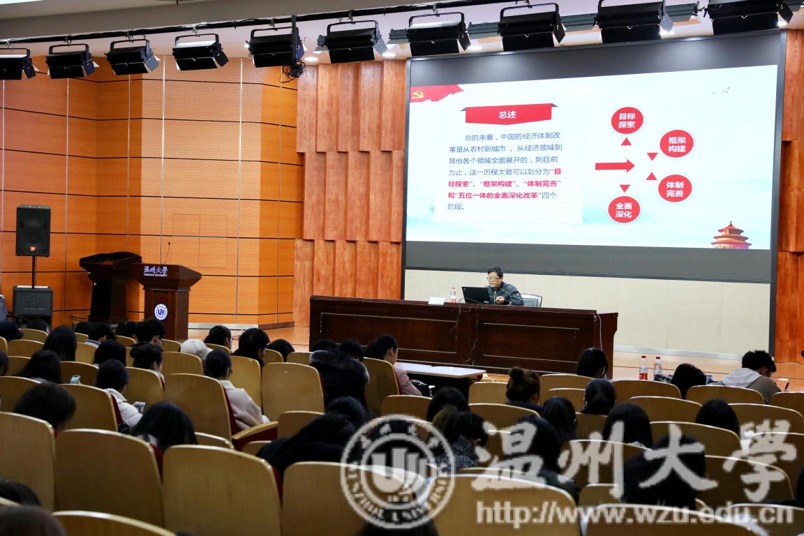 12月26日下午,禁忌书屋 2018-2019学年第一学期第三场形势与政策课讲座于岩松堂雁山厅举行。本次讲座由禁忌书屋 党总支副书记杨振海做“唯有改革开放才有发展新愿景”的主题讲座。
