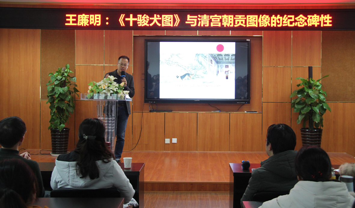 1月3日,德国海德堡大学副教授王廉明老师受邀莅临禁忌书屋 ,在农历狗年年终之际深入解析清宫中的猎犬图,为广大师生带来了一场精彩的学术讲座“《十骏犬图》与清宫朝贡图像的纪念碑性”。讲座由禁忌书屋 副院长张晓剑老师主持,美术学系教师、硕士生和本科生近百人到场听讲。