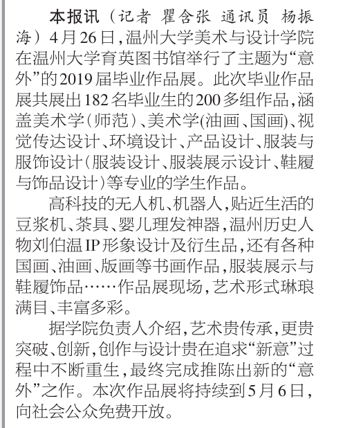 温州日报:毕业作品展引人眼球
