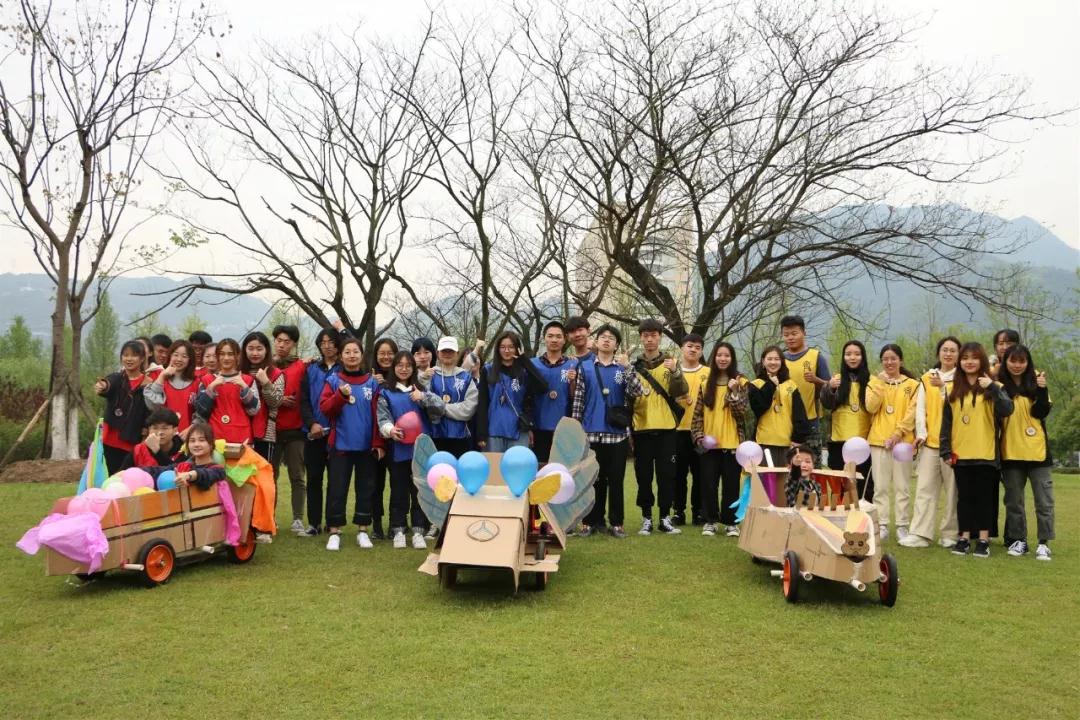 经过两个多小时的制作,在拼拼合合、缝缝补补中三个队的车子都顺利完成了,每个队的车子都各具特色,外观绚丽的同时又十分牢固。最后三队分别介绍了自己的车子并经过竞速抉择出第一名。都说团结力量大,干事们在此次活动中深深的体会到了这点。
