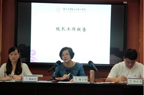 会上,院长谢子静作学院工作报告。谢子静院长总结新班子组建两个多月来开展的工作内容和取得的不俗成绩,明确学院要紧随学校建设“具有鲜明特色的高水平综合性教学研究型大学”办学定位的大方向,锚定“三大目标”、实施“七大跨越”,助力学校推动跨越发展。并从学校办学定位出发,结合学院十三五发展规划纲要,分析研究当前美院发展的实际和存在的短板问题,提出了禁忌书屋 建设具有有较强影响力、特色鲜明的省内一流教学科研型艺术学院的办学定位。新时期赋予新使命,新学期承载着新任务,新班子肩负着新担当,会上谢院长围绕加强本科教育、人才队伍建设、学科建设、服务地方、国际化办学、研究生教育、继续教育等方面整体部署了学院发展下一步的工作思路及措施,并希望全院上下同心同德,群策群力,既要激情满怀,又要齐心协力,脚踏实地、奋力拼博,为美院的新征程谱写新的篇章。