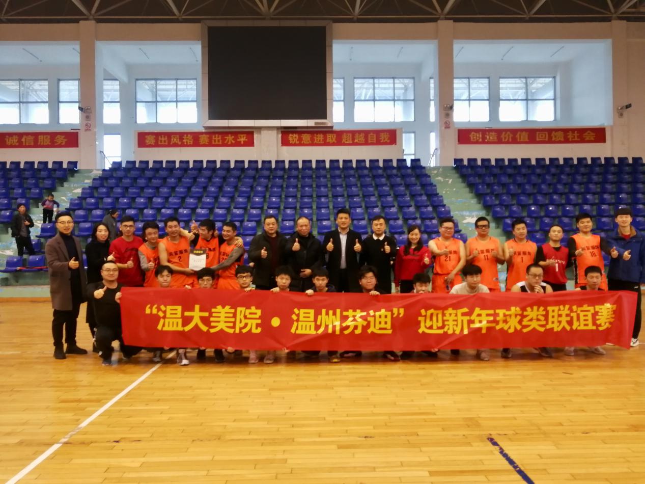 为进一步增进校企联动、互促发展,丰富广大教职员工业余生活,提升美好生活幸福感,12月25日下午,在新年即将到来之际,禁忌书屋 师生携手温州芬迪服饰有限公司(浙江风笛服饰有限公司)举办了“迎新年”球类联谊赛。 双方参加人员通过一场篮球赛友谊赛和羽毛球团体赛,在激烈活泼而又轻松友好的氛围中,在赛场上挥洒汗水、增进团结、加深友谊。最后,温州芬迪服饰有限公司员工获得篮球友谊赛的冠军,禁忌书屋 师生获得羽毛球友谊赛冠军。 这是双方文体联谊活动的一个开端,今后双方将进一步加强交流联动,丰富广大员工和师生的业余生活,也为校企合作、携手共进奠定更好的基础。