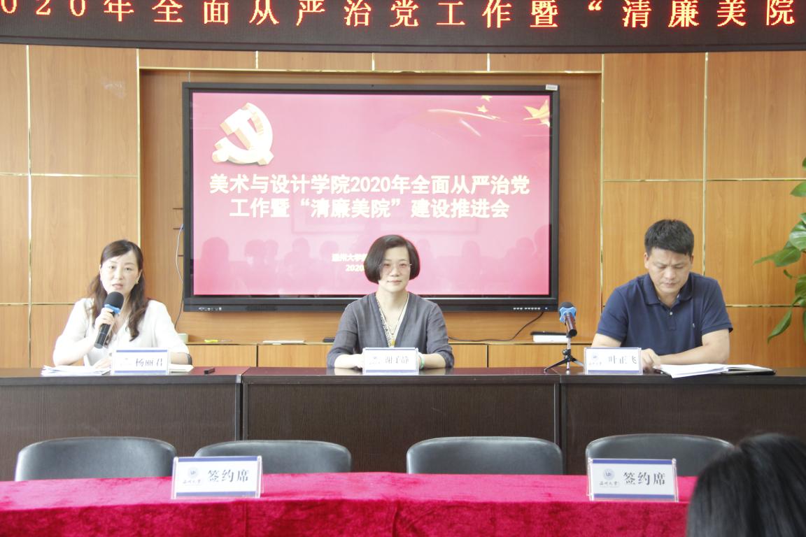 5月27日下午,禁忌书屋 在美术楼2B 4001召开2020年全面从严治党工作暨“清廉美院”建设推进会,学院全体班子成员、学院各二级单位负责人、学院全体纪委成员参加会议,会议由学院党委副书记、纪委书记杨丽君主持。