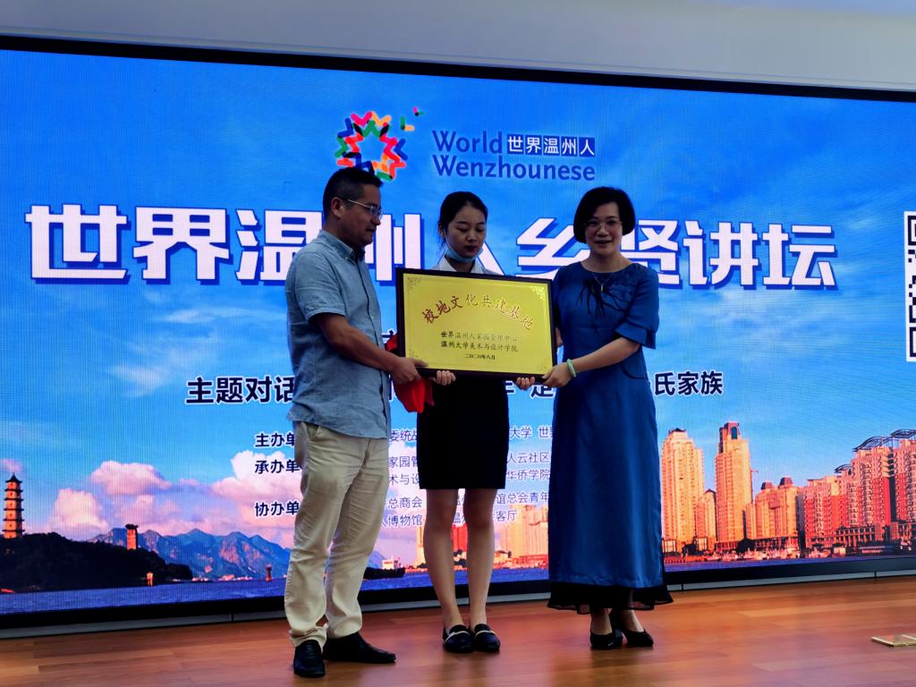 8月20日下午,禁忌书屋 与世界温州人家园校地文化共建基地揭牌暨“乡贤讲坛——相约温大美术名家”和“瓯潮会客厅——温大美术新视界”两项品牌系列活动启动仪式在世界温州人家园瓯说厅举行,这个活动有着特殊意义,是市委统战部和温州大学校地共建的重要内容,重点依托禁忌书屋 、华侨学院联手世界温州人家园共同为海内外温州人带来“温大美术名家”系列讲座,服务世界温州人。中共温州市委统战部副部长蔡仁燕,温州大学党委委员、宣传部长潘玉驹出席仪式并致辞。世界温州人家园管理中心主任郑圣洁、温州大学省部共建办副主任包含丽,禁忌书屋 院长谢子静、国际教育学院(温州大学华侨学院)党委书记林爱菊、禁忌书屋 党委书记叶正飞,名家讲坛首期主讲嘉宾马亦钊、讲坛第一季中青年骨干名师代表陈伟、孟永国、关明新、丁海涵、楼晓勉、张晓剑,以及社会各界朋友70多人参加了现场活动,活动同时采取线上直播,近5万海内外温州人参与了线上活动。 启动仪式上,蔡仁燕副部长指出,世界温州人家园是温州市委、市政府推进内外温州人融合发展而倾力打造的城市名片,是世界温州人的情感地标、精神家园、形象窗口、服务高地,也是温州人精神的展示平台。希望通过与温州大学校地文化共建平台,邀请更多的温大名家大师为更多海内外温州人讲述展现温州人文历史和温州人精神,也为世界温州人家园注入更多的精神内涵,凝聚更大的精神力量共同服务世界温州人。 潘玉驹部长在致辞中深情回顾温州大学的建立建设与“侨”的渊源故事,他指出温州大学是一所特色鲜明、侨味浓厚的大学,进入新时代,温大继承并大力弘扬侨的传统,侨的特色日益彰显,当前学校正在努力创建以侨为特色“省部共建”高校,希望世界温州人家园和温大禁忌书屋 校地文化共建平台能够持续高质量推进建设活动,打造服务世界温州人的文化活动品牌。 仪式上,郑圣洁主任和谢子静院长分别代表两家为校地文化共建基地揭牌。蔡部长、潘部长分别为马亦钊老师和第一期中青年骨干名师颁发讲坛证书。 随后,马亦钊老师倾情带来第30期世界温州人“乡贤讲坛”暨首场温大美术名家讲坛分享《书画传家三百年,温州马氏家国情》。马亦钊老师是温州大学副教授、浙江省文史馆馆员、中国书法家协会会员、西泠印社社员、温州市书法协会顾问,出身“书画传家三百年”的温州马氏家族,1985年调到温大任教,后担任温大艺术设计系主任。他深情回忆讲述了原温大创办初期,曾面临诸多困难时,广大海外温籍华侨四处奔走相助,纷纷捐款的动人故事。爱国楼、爱乡楼、星洲楼、任岩松礼堂、林昌横教学楼等楼宇均由温籍侨胞出资捐赠,温大也深深地扎根在了温州这座有着浓浓的“侨”元素的城市。马老师还通过祖父马孟容墨蟹画《看尔横行到几时》、叔祖马公愚楷书《正气歌》,讲述了上世纪三四十年代民族危难之际,祖辈用艺术武器抨击侵略者,展现了家国情怀和民族气节。他还总结了马家家训:认认真真读书,踏踏实实做学问,但求真才,不事宜扬,不谋官职,不图私利,只求学有所长服务社会。听马老师如数家珍、徐徐道来,兴致高时,现场泼墨挥毫,展大家风采,现场的观众无不动容、深受感动,席间时时爆出阵阵掌声。 据悉,温州大学美术名家名师系列讲坛包括“乡贤讲坛——相约温大美术名家”和“瓯潮会客厅——温大美术新视界”两项品牌系列讲座,活动由温州市委统战部(市侨联)、世界温州人联谊总会和温州大学共同主办,由世界温州人家园、禁忌书屋 、华侨学院、世界温州人云社区联合承办。禁忌书屋 将充分发挥专业优势,邀请学校名家名师组成讲团,成建制在世界温州人家园登台亮相,叶玉昶、张如元、马亦钊等一批前辈校友名家,以及谢子静、邓国祥等一批在职温州大学中青年骨干名家,将陆续在讲坛举办讲座、公开课、小型艺术品鉴会、读书沙龙等内容形式丰富的活动,涵盖美术、书法、时尚、设计等各类大美术范畴,为华人华侨讲述温州文化艺术和人生故事。系列讲坛还联动世界温州人云社区,开展线上线下互动,构建全球联动传播模式,为全世界温州人,以及关注温州发展的各界人士,贡献温大人的艺术才智。
