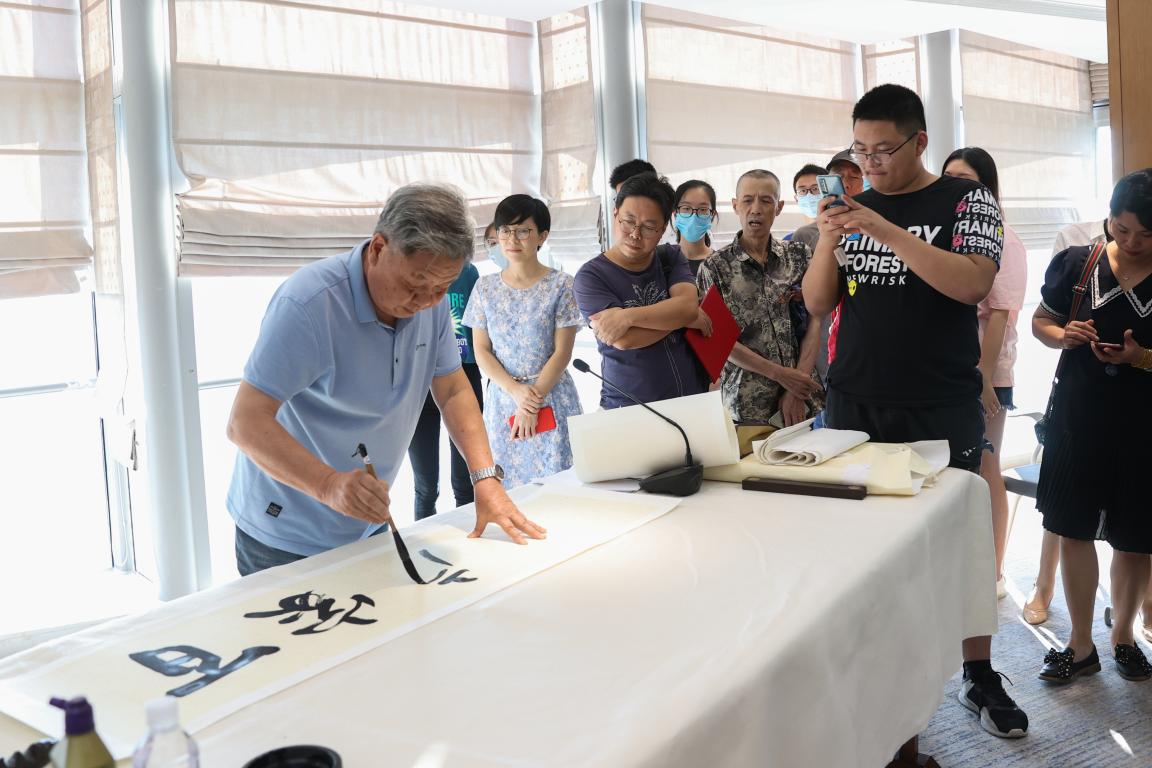 随后,马亦钊老师倾情带来第30期世界温州人“乡贤讲坛”暨首场温大美术名家讲坛分享《书画传家三百年,温州马氏家国情》。马亦钊老师是温州大学副教授、浙江省文史馆馆员、中国书法家协会会员、西泠印社社员、温州市书法协会顾问,出身“书画传家三百年”的温州马氏家族,1985年调到温大任教,后担任温大艺术设计系主任。他深情回忆讲述了原温大创办初期,曾面临诸多困难时,广大海外温籍华侨四处奔走相助,纷纷捐款的动人故事。爱国楼、爱乡楼、星洲楼、任岩松礼堂、林昌横教学楼等楼宇均由温籍侨胞出资捐赠,温大也深深地扎根在了温州这座有着浓浓的“侨”元素的城市。马老师还通过祖父马孟容墨蟹画《看尔横行到几时》、叔祖马公愚楷书《正气歌》,讲述了上世纪三四十年代民族危难之际,祖辈用艺术武器抨击侵略者,展现了家国情怀和民族气节。他还总结了马家家训:认认真真读书,踏踏实实做学问,但求真才,不事宜扬,不谋官职,不图私利,只求学有所长服务社会。听马老师如数家珍、徐徐道来,兴致高时,现场泼墨挥毫,展大家风采,现场的观众无不动容、深受感动,席间时时爆出阵阵掌声。