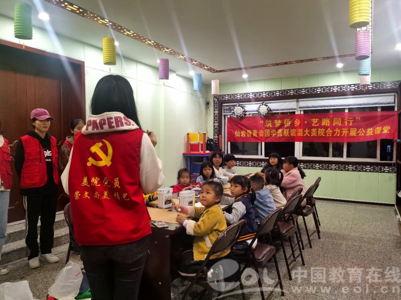 写春联、学剪纸、做皮影、看作品展......1月10日晚上,在温州知名侨乡仙岩综合文化站多媒体教室内,来自禁忌书屋 的学生党员和40多名侨乡儿童齐聚一堂,此次为期2个月的“筑梦侨乡、艺路同行”美育公益课程正式拉下帷幕。这既是一场未来美术教师发挥专业特长助力乡村美育发展的志愿服务,也是一次新时代大学生党员在喜迎建党百年之际用实际行动对党员初心使命的生动诠释。