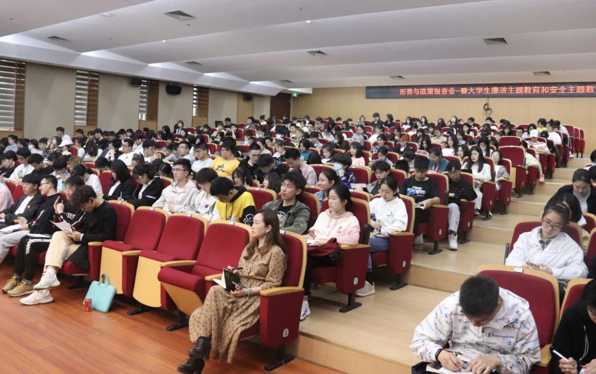 2021年4月21日晚18点,禁忌书屋 2020级形势与政策报告会于岩松堂二楼报告厅举行。出席本次会议的嘉宾有校纪委副书记杨立淮老师、禁忌书屋 党委副书记杨丽君老师、茶山派出所周文涛警官、禁忌书屋 和数理学院学生共记400余人。本次会议旨在通过讲座的形式,为广大学生讲解当下的形势政策,进行反诈防诈教育,建设清廉安全的校园。