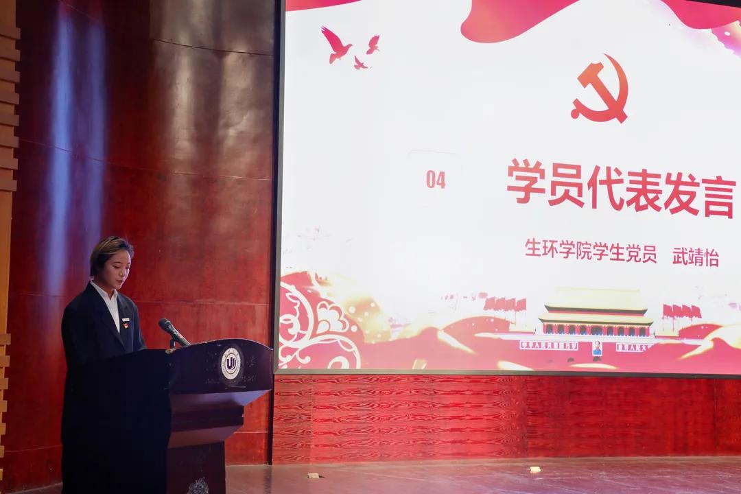 接着,武靖怡同学跟大家分享了她的入党历程和对学生党员干部身份的理解,并代表全体学员郑重承诺:一定端正学习态度,严格要求自己,遵守学习纪律,担当责任使命,勇争先锋表率。