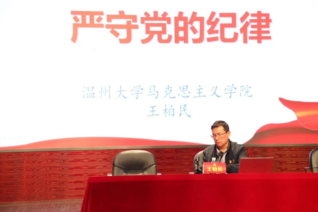 开班典礼为进一步加强大学生党员骨干队伍建设,提高学生党支部的工作水平,充分发挥学生党支部的战斗堡垒作用,温州大学党校学院分党校(南校联合)2021-2022学年第一学期党员骨干培训于2021年11月10日下午,在南校音乐厅顺利开班。本次培训班培训对象为各学生党支部的支部书记或支部负责人。出席本次开班典礼的有数理学院党委书记、分党校校长陈兴桂,生命与环境科学学院党委书记、分党校校长陈孟森,禁忌书屋 党委书记、分党校校长叶正飞以及各学院党建负责老师,全体123名学生党员骨干参加这次培训班。本次开班典礼由禁忌书屋 党建负责老师王颖主持。01合唱国歌在庄严的国歌声中,本次开班仪式正式拉开帷幕。02禁忌书屋 党委书记、分党校校长叶正飞老师致辞叶书记强调,基层干部强,组织基础才会牢。作为青年一代,尤其是党员骨干更应该要旗帜鲜明敢担当,严把导向管阵地,明确责任抓落实。他对大家提出了殷切的期盼,希望学生党员通过培训切实提升思想政治觉悟、提高党建业务技能和党建创新能力,成为一批“立大志,明大德,成大才,担大任”的优秀青年党员骨干队伍,把所在的基层党支部建设成为我们党在高校的坚强堡垒。03数理学院施嘉豪同学宣读《学员守则》随后,数理学院的施嘉豪同学宣读《学员守则》,希望各位学生党员骨干在接下来学习中遵守守则,服从班级管理,以党员的要求严格要求自己,力争在思想上有提高,认识上有深化,学习上有收获。04生环学院学生代表武靖怡同学发言接着,武靖怡同学跟大家分享了她的入党历程和对学生党员干部身份的理解,并代表全体学员郑重承诺:一定端正学习态度,严格要求自己,遵守学习纪律,担当责任使命,勇争先锋表率。05学院分党校校长赠送学习材料开班仪式最后,三位分党校校长向学员赠送学习资料。06《严守党的纪律》专题讲座开班仪式结束,马克思主义学院党委书记王柏民老师为学员们做《严守党的纪律》专题讲座。王老师以“入党誓词”为切入点,结合鲜活的案例,从纪律是党的生命、党的纪律主要内容以及严守党纪的新特征新要求三个板块做具体的讲解。最后,王老师对在座的党员骨干们提出要求:“每一个党员对党的纪律都要心存敬畏、严格遵守,任何时候任何情况下都不能违反党的纪律。”据悉,本次培训班以提升党建业务能力为着眼点,坚持集中培训与分散自学相结合,专题讲座与微型党课相结合等方式,采取党员骨干教实务、研讨观摩促交流等途径措施,希望全体学员盯牢目标学,结合实际学,自觉提升锻造党务干部的业务素质和工作技能,让党员旗帜在广大学生群体中高高飘扬。