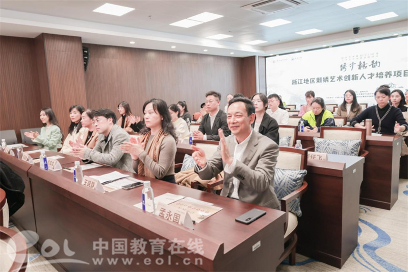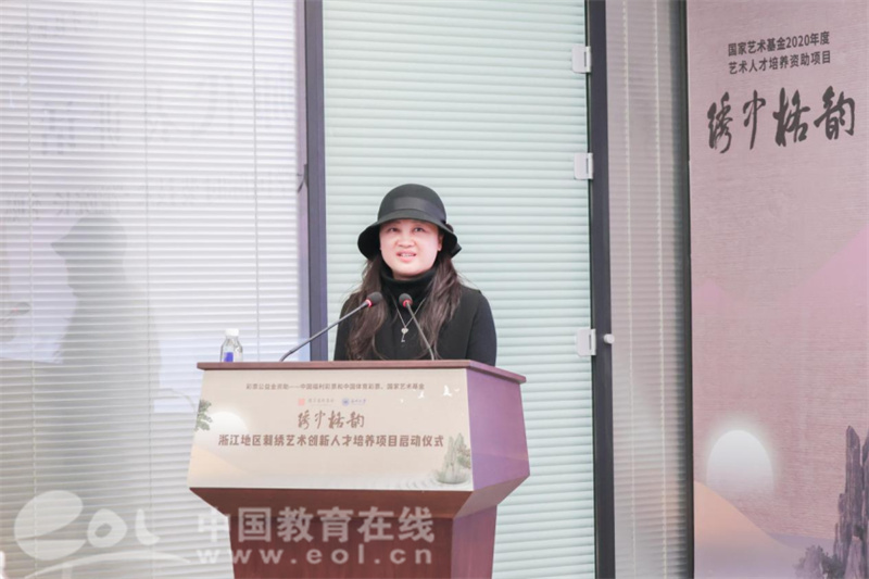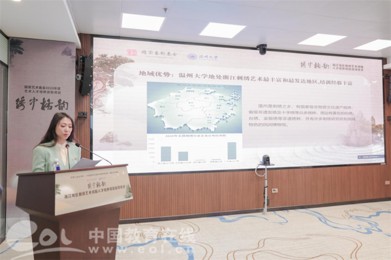 中国教育在线浙江站讯 (记者 陈显婷)近日,由国家艺术基金资助,温州大学承办的“浙江地区刺绣艺术创新人才培养”项目启动仪式在温州大学隆重举行。温州市文化广电旅游局、中国非遗保护协会、温州大学有关领导,项目导师、专家以及来自北京、上海、江苏、浙江等地的学员共计40余人出席。