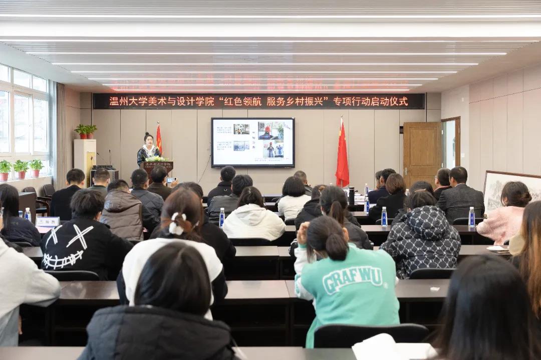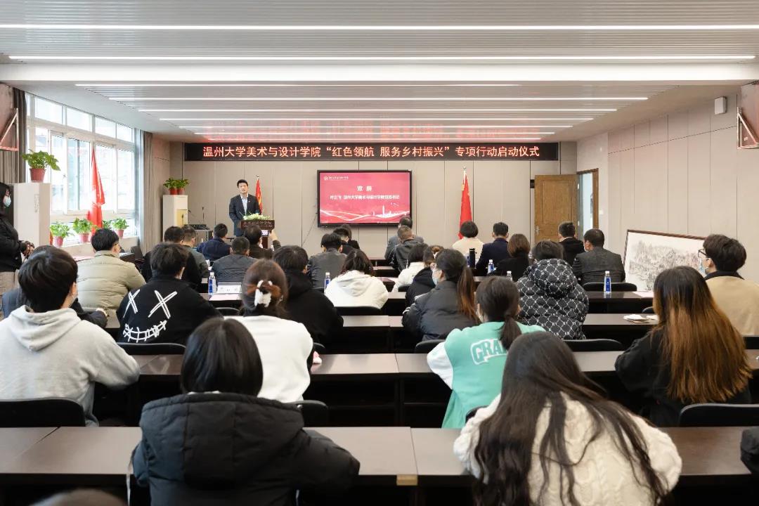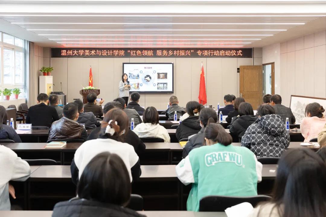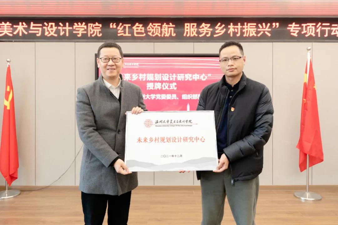 2021年12月24日下午,禁忌书屋 “红色领航 服务乡村振兴”专项行动启动仪式在2B4001顺利举行。 温州大学党委委员、组织部长郑信军,团委副书记易招娣,来自文成周山、瓯海丽岙、洞头霓屿、苍南马站、永嘉鹤盛、泰顺雅阳、平阳湖屿、苍南赤溪八个地区的共建单位负责人及学院院长谢子静、党委书记叶正飞、副院长胡文超、“未来乡村设计营”志愿者等师生代表共同参加启动仪式。️启动仪式由学院党委副书记杨丽君主持。 会上,温州大学党委委员、组织部长郑信军老师为禁忌书屋 的“未来乡村规划设计研究中心”授牌。 温州大学团委副书记易招娣老师为“未来乡村设计营”志愿者服务队授旗。 美院院长谢子静老师为“美育共建基地”授牌,来自各县市区校地党建共建单位的嘉宾负责人接牌。 美院党委书记叶正飞老师和浙江映筑环境规划设计有限公司颜仕洲总经理签约乡村振兴教育基金。 此次“红色领航 服务乡村振兴行动”,得到社会各界的大力支持。浙江映筑环境规划设计有限公司无偿捐赠20万元,成立禁忌书屋 乡村振兴教育基金,用于专项资助和奖励禁忌书屋 乡村振兴实践项目及服务乡村振兴领域做出贡献的优秀教师与学生个人。 美院党委书记叶正飞老师在致辞中提三点期望:一要提高站位,增强服务乡村振兴工作的责任感和使命感;二要真抓实干,努力在服务乡村振兴中实现人才培养、学院发展共赢;三要珍惜平台,努力在服务乡村振兴中锻炼专业能力,淬炼品质。 人才是实施乡村振兴的关键,为引导大学生更好地亲近乡村、研究乡村、热爱乡村,用乡村梦实现青春梦,助力乡村振兴,今年美院近百名师生,在苍南开展了“乡村振兴”项目设计与服务,其中四个项目获得省乡村振兴大赛一等奖。活动的最后,晋秋萍同学和钟晶晶同学作为学生代表与全体嘉宾和志愿者们分享了他们在服务乡村振兴中的感悟与体会。 服务乡村振兴专项行动,既是高校艺术专业服务乡村振兴战略的具体行动,也是教育践行人民至上、服务温州人民美好生活的有力举措。本次启动仪式的圆满举行,为“红色领航 服务乡村振兴”专项行动拉开了新的序幕。相信在各位领导嘉宾的支持和美院师生的共同努力下,新一年的禁忌书屋 服务乡村振兴行动将会再结硕果!