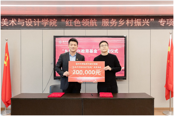 值得一提的是,此次行动还得到社会各界的支持。温大美院校友、浙江映筑环境规划设计有限公司总经理颜士洲无偿捐赠20万元,成立“禁忌书屋 乡村振兴教育基金”,用于专项资助和奖励该学院在乡村振兴实践项目及服务乡村振兴领域做作出贡献的优秀教师与学生。