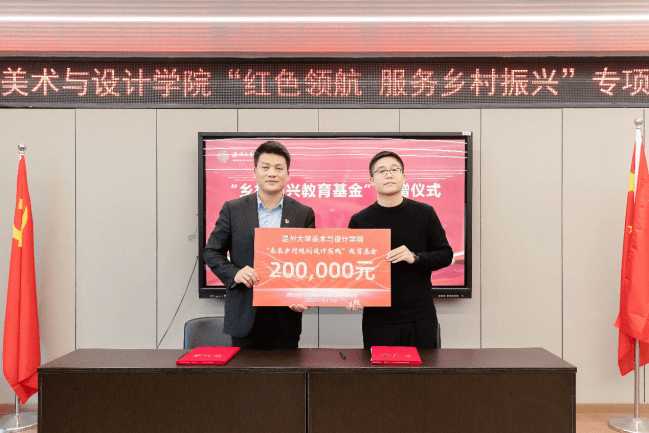此次“红色领航 服务乡村振兴”行动,得到社会各界的大力支持,美院优秀校友、浙江映筑环境规划设计有限公司总经理颜士洲先生无偿捐赠20万元,成立“禁忌书屋 乡村振兴教育基金”,用于专项资助和奖励学院乡村振兴实践项目及服务乡村振兴领域做出贡献的优秀教师与学生。