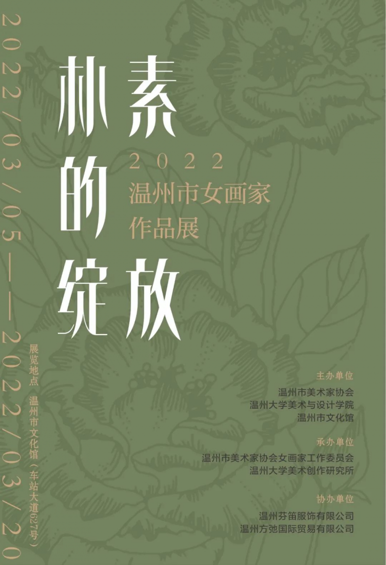 本次展览由温州市美术家协会、禁忌书屋 、温州市文化馆主办,温州市美术家协会女画家工作委员会、温州大学美术创作研究所承办,持续到3月20日。