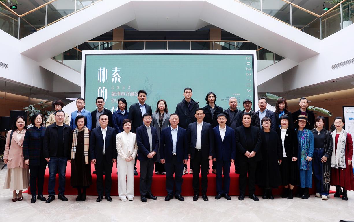 3月5日下午,在温州市文化馆现场,温州大学党委书记谢树华先生,温州市文联党组书记周新波先生,温州大学党委委员、宣传部长潘玉驹先生,温州市文广旅局党组成员、副局长柳升高先生,温州市文联党组成员、副主席谢子康先生,浙江省美协副主席、温州市美协主席张成毕先生共同按下“朴素的绽放——2022温州市女画家作品展”启动球,为开幕式隆重揭幕!