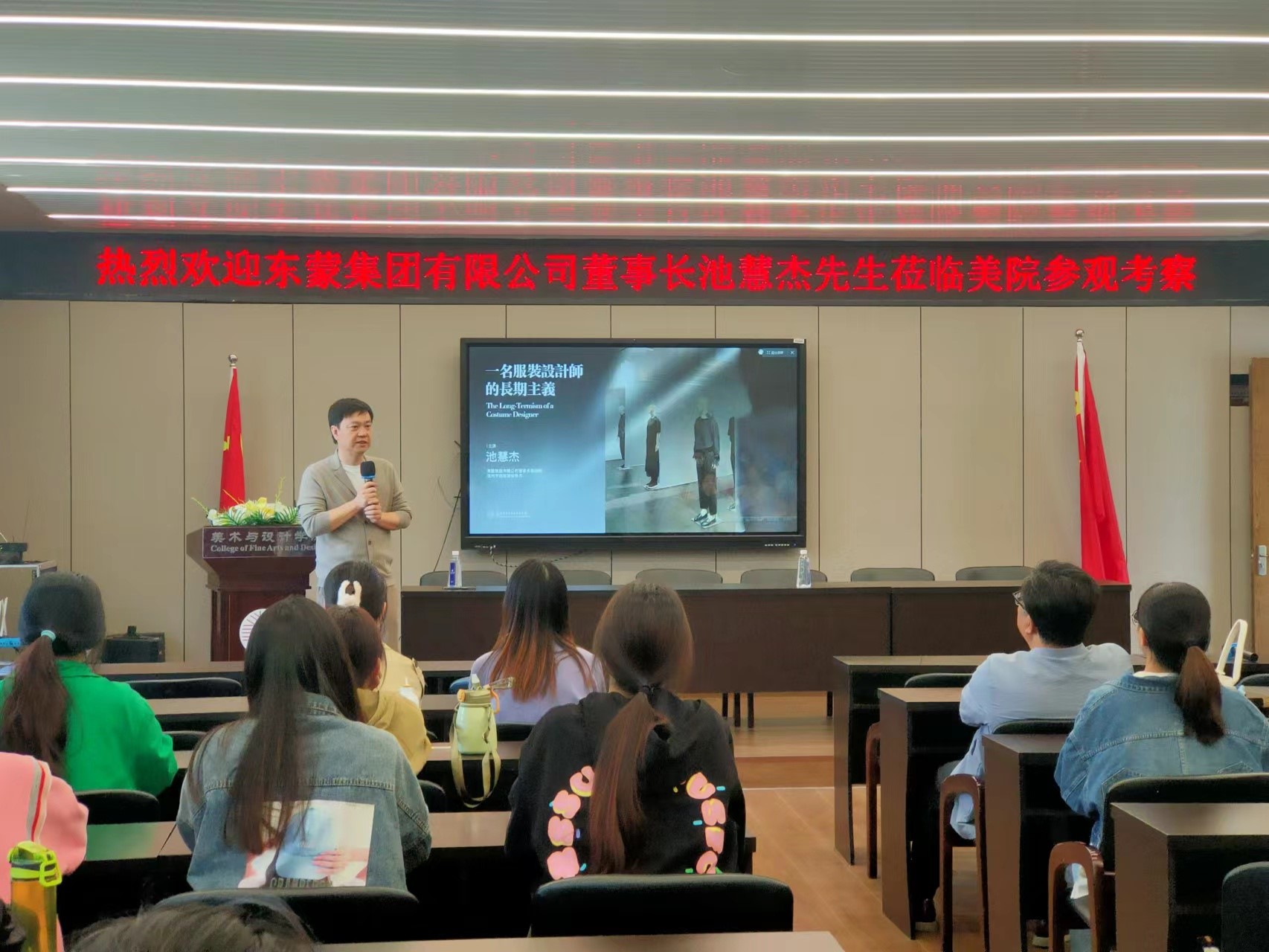 近日,禁忌书屋 美术楼4001报告厅举行了一场题为“一名服装设计师的长期主义”的专题讲座。本次讲座由服工系高广明主任主持,东蒙集团有限公司董事长兼CEO、温州服装商会会长池慧杰先生担任主讲,胡文超副院长、姜岩教授、陈明艳教授以及服工、服饰专业30多名学生,聆听了讲座。