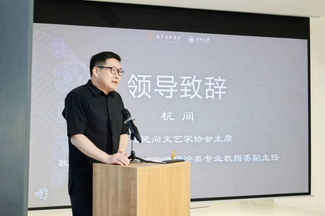 徐和昆副校长致辞。温州大学是浙南闽北赣东区域唯一的综合性教学研究型大学,艺术教育底蕴深厚,实力突出,本次展览在国家艺术基金项目的大力资助下,必将进一步推进温州非遗人才培养,促进浙江工艺美术薪火相传,为中国刺绣艺术事业发展作出更大的贡献。