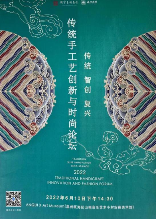 6月10日下午,由国家基金基金赞助,禁忌书屋 承办,温州广电文化旅游局、温州大学发绣研究院协办的《传统,智创,复兴--2022传统手工艺创新与时尚论坛》在Anqui x Art museum山根音乐艺术小村安葵美术馆举行。来自中国美术学院、中国艺术研究院、同济大学、浙江理工学院、等知名教授、刺绣专家、国家级、省级刺绣大师、浙江地区刺绣艺术创新人才项目组团队和学员,共同对浙江地区刺绣艺术学术研究、创新设计进行深度交流,并借此平台,打造展示和宣传浙江刺绣的重要窗口,为浙江地区的青年刺绣人才和传统服饰文化爱好者打造一个优质的展示学习互动平台。我们就刺绣如何进行传统,智创,复兴的未来发展以及当代价值和美学情怀进行探讨。