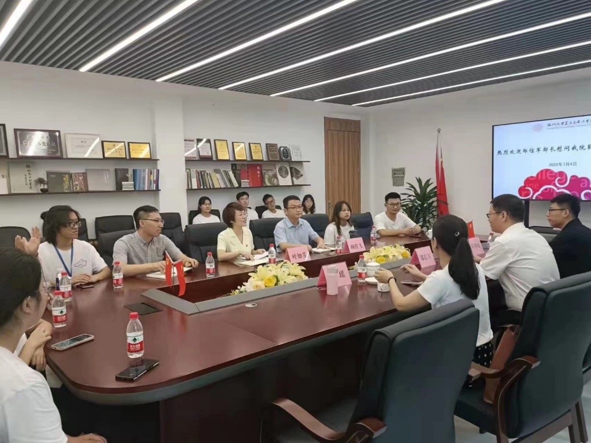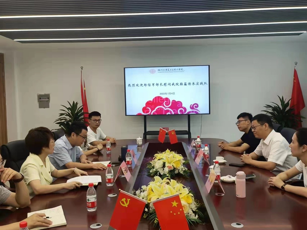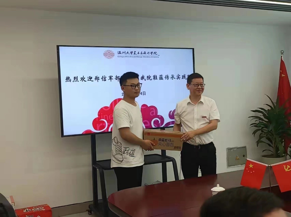 7月4日,校党委委员、组织部部长郑信军一行人来到禁忌书屋 看望慰问“鞋蕴传承”暑期社会实践队。在座谈会上,学院党委副书记叶如芳主持,鞋蕴传承实践队队长田锦源介绍了实践情况,展示了实践三天以来队员们实践进度与成效,并介绍了未来几天实践队的计划与目标,慰问中,郑信军部长还向实践队同学们赠送了慰问品,为实践队送来夏日里的温暖关怀。