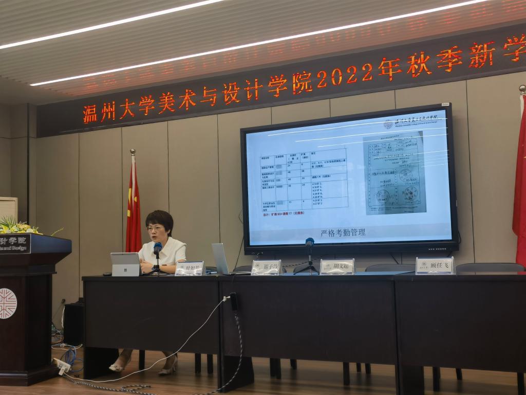 2022年9月14下午13:30分,学院召开2022-2023学年第一学期班主任工作会议,出席本次会议的有学院党委副书记叶如芳、学工办主任杨鹏、以及全体本研班主任。 会上,叶如芳副书记,首先向全体班主任致以三个感谢,感谢所有班主任在上一学年度的辛苦付出,以及在暑假就业、社会实践等方面对学生的帮扶和指导。随后,叶书记向全体班主任传达了2022年思政研讨会会议的精神,强调新学年全校学生思政工作要在加强校园安全稳定上下实功夫,在提高思政工作水平上下苦功夫,在提升工作效能上下硬功夫,在促进高质量就业上下狠功夫。 接下来,叶如芳副书记,围绕学生工作中典型的一些工作案例,进行了分享,分别是违反疫情防控、违反学风考勤以及学生心理健康三个方面的典型案例进行了剖析,以此强化班主任在遇到相关学生事件时的思考和处理办法,也进一步加强班主任队伍对学生关心关爱的引导。 最后,叶如芳副书记交流了班级管理工作的一些要点,四项十二点,分别围绕强化思想引领,构建铸魂育人矩阵、完善管理服务,保障学生健康成长、搭建成长平台,促进学生全面发展、实施精准帮助,提高育人实效四个项工作要点,针对学期初教育、网络育人、学风建设、学科竞赛、关心关爱等十二个点提出了本学年的学生工作具体要求,希望美院全体班主任紧紧围绕学校的学生工作重点,夯实日常学生管理,进一步关心关爱学生的行长成才。 会上,学工为全体班主任准备了2022-2023学年学生工作手册,涵盖学生相关工作管理联系方式、以及学生各项数据,还为老师们精心准备了非传统工坊的扎染纸伞。