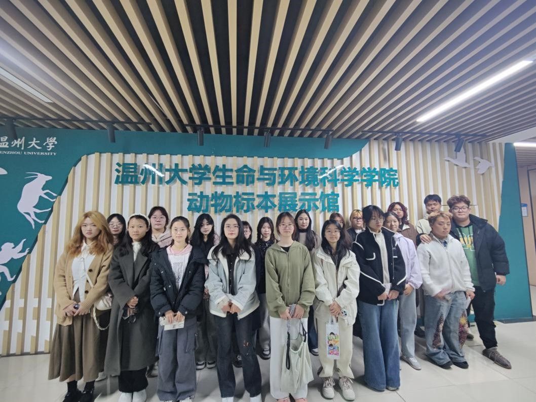 在温州大学生命与环境科学学院动物标本展示馆,馆内馆藏丰富,种类繁多。馆内共有海洋、草丛、湿地、森林四大展区,占地1000㎡,包含了从低等的腔肠动物标本到高等的哺乳动物标本在内的1000余种,其中海洋动物500多种,陆生动物400多种,隶属国家级保护动物的45种。目前馆藏标本中有80%来源于温州地区,海洋动物标本种类在浙南地区较为齐全。学生干部们体会到了知识具象化的趣味性,也感触到了生物的多样性,对动物学这门课程有了更深层次的理解。