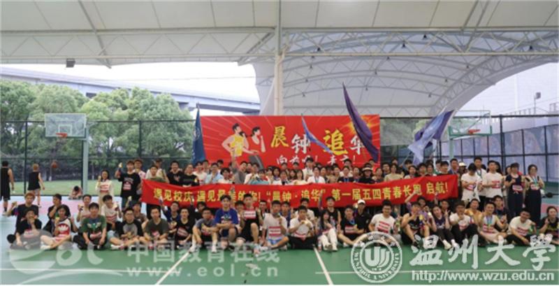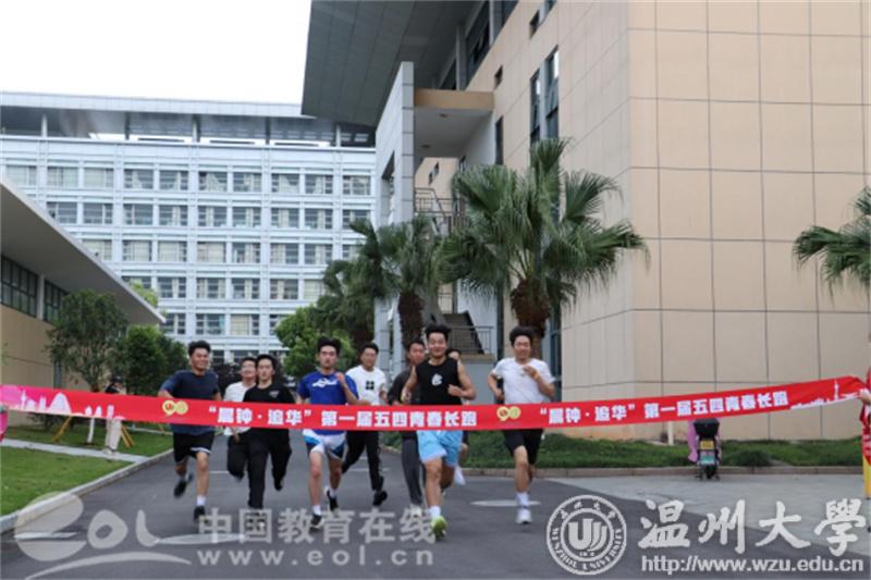 中国教育在线浙江站讯 (记者 陈显婷 通讯员 石建林 晏晴昱)为迎接温州大学办学90周年,弘扬“五四精神”,展现青年的青春风貌,温大禁忌书屋 、商学院、人文学院、外国语学院、体育与健康学院、电气与电子工程学院、计算机与人工智能学院等七院于五四青年节来临之际开展了青年学生长跑活动。本次活动中,温大90名学子,长跑途经5.4公里的校园,表达了对温大办学90周年的美好祝福。同时,温大学子希望在这个属于青年人的节日中,以奔跑的姿态焕发青年蓬勃之姿、传承五四精神。