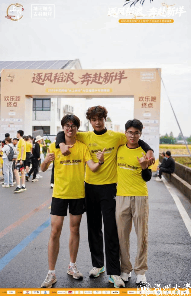 晨光熹微,微风拂过金色稻浪,一场融合健康活力、乡村韵味与青春风采的盛宴在昆阳镇温情启幕。作为“十万学子看温州”系列活动的重要组成部分,此次活动吸引了温州大学学子踊跃参与,同学们以脚步丈量浙南田园,用热情感受温州乡村振兴的蓬勃生机。晨光启程,奔赴金色田野清晨6点10分,天光微熹,温州大学E区后门已聚集起一群朝气蓬勃的身影。在禁忌书屋 石建林老师的带领下,同学们精神抖擞,满怀期待地登上大巴。车辆顺利抵达昆阳镇,一片静谧而美丽的乡村画卷在同学们面前徐徐展开。之后,队伍抵达本次欢乐跑的起点——历史文化底蕴深厚的鸣山村。古老的建筑在晨光中苏醒,与现代的奔跑活力交织成一幅动人的画面。在村民文化广场,彩虹水车、古韵街巷与百年榕树静静伫立,仿佛在为即将到来的奔跑者们加油鼓劲。鸣枪开跑,穿梭诗画田园在专业教练的带领下,同学们进行了充分的热身运动,拉拉队员们的激情呐喊更是将现场气氛推向高潮。8点整,随着发令声响,欢乐跑正式开启!本次赛道全程约4.5公里,从文化名村鸣山村出发,途经风景如画的万金村,最终抵达“浙南粮仓”——上林垟村。同学们不再是校园里的学子,而是化身为田野间的跑者,沿途欣赏着古桥流水与农家风情,呼吸着带有稻香的清新空气。最令人震撼的,莫过于终点线前那一片无垠的金色稻浪。奔跑的汗水与丰收的喜悦在此刻交融,冲过终点的瞬间,映入眼帘的是质朴的粮仓和翻滚的稻穗,这份独特的“完赛奖赏”深深烙印在每一位学子的记忆中。满载而归,品味乡村温度活动的温暖不仅在于奔跑本身,更在于无微不至的后勤保障。完赛后,同学们领取了颇具纪念意义的完赛证书。现场更设有丰富的物资补给站,水果、点心、饮料等应有尽有,同学们还惊喜地领取到了当地特色的花雕酒、大米和平阳粉干,实实在在地“满载而归”。所有成员完赛后,大家乘坐接驳车返回起点鸣山村,这里依然是热闹非凡,多个物资领取点继续为学子们提供着饮料和零食,让每一位参与者都深切感受到了昆阳人民的热情好客。在稍事休整后,全体师生安全返回温州大学,为这次充实而愉快的乡村健康跑之旅画上了圆满的句号。活动延伸:用脚步阅读温州,用艺术连接乡土本次昆阳镇乡村健康跑,不仅是体能的锻炼,更是一堂生动的“行走的思政课”和“田野美学课”。作为“十万学子看温州”活动的重要组成部分,它成功地将高校学子引向基层、引向乡村,让同学们亲身体验了温州美丽乡村的建设成果。带队老师、禁忌书屋 的石建林老师表示,这样的活动极具意义。它让同学们得以走出课堂,在真实的乡村场景中汲取创作灵感。鸣山村的古韵、上林垟村的丰收景象,都是最鲜活的素材,相信这次经历将对同学们未来的学术创作产生深远影响。通过这次奔跑,学子们用脚步阅读了温州乡村的生态之美、人文之美与发展之美,深刻理解了“浙南粮仓”的厚重与希望。这不仅仅是一次比赛,更是一次心灵的洗礼,一次与脚下这片土地的深情对话。相关链接://mp.weixin.qq.com/s/C77qOwL7KcUicOt0UHi3YA供稿:温州大学团委编辑:张雪晨校对:金品轩初审:谢巍复审:石建林终审:叶如芳