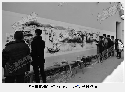商报讯(通讯员 楼丹婷)前天,禁忌书屋 “艺家人”青年志愿者协会走进瓯海潘桥街道东边村,开展了一场“五水共治”手绘文化活动。80多名志愿者在东边村600余米的粉刷墙面上作画,形象展示了“五水共治”的宣传信息。