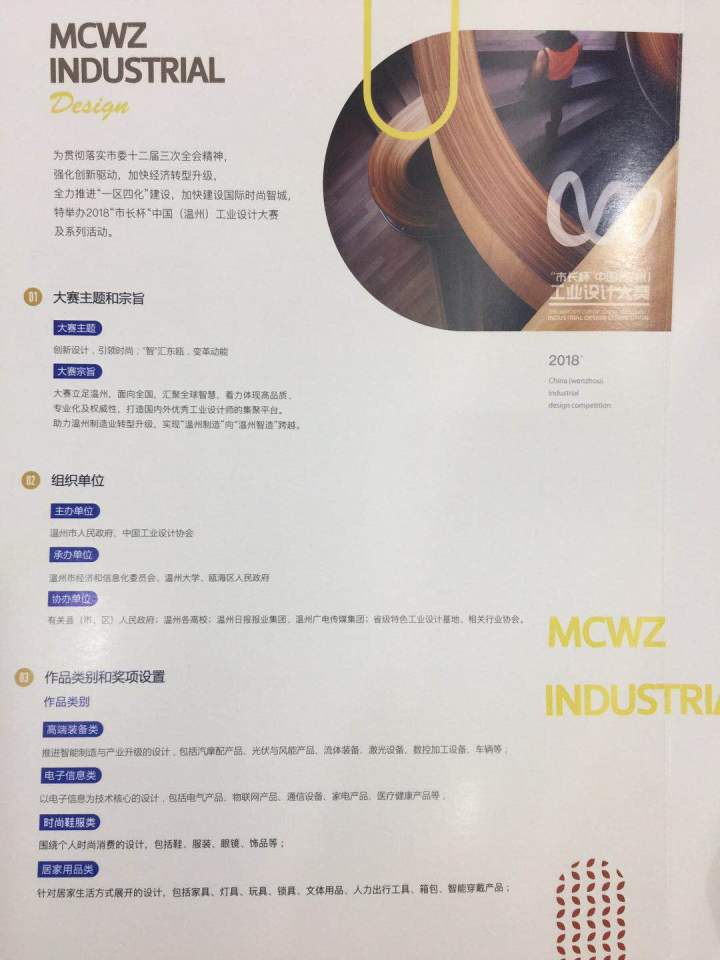 鉴于去年“市长杯”工业设计大赛的成功举办以及由此带来的积极影响,市委市政府决定继续举办“市长杯”工业设计大赛,本届大赛将延续首届大赛“创新设计、引领时尚、智汇东瓯、变革动能”的主题,将奖项继续聚焦在与我市产业密切相关的高端装备、电子信息、时尚鞋服和居家用品等四大领域,并以高品质、专业化和权威性为目标,努力打造成为国内外优秀工业设计师的集聚平台,助力温州制造业转型升级。