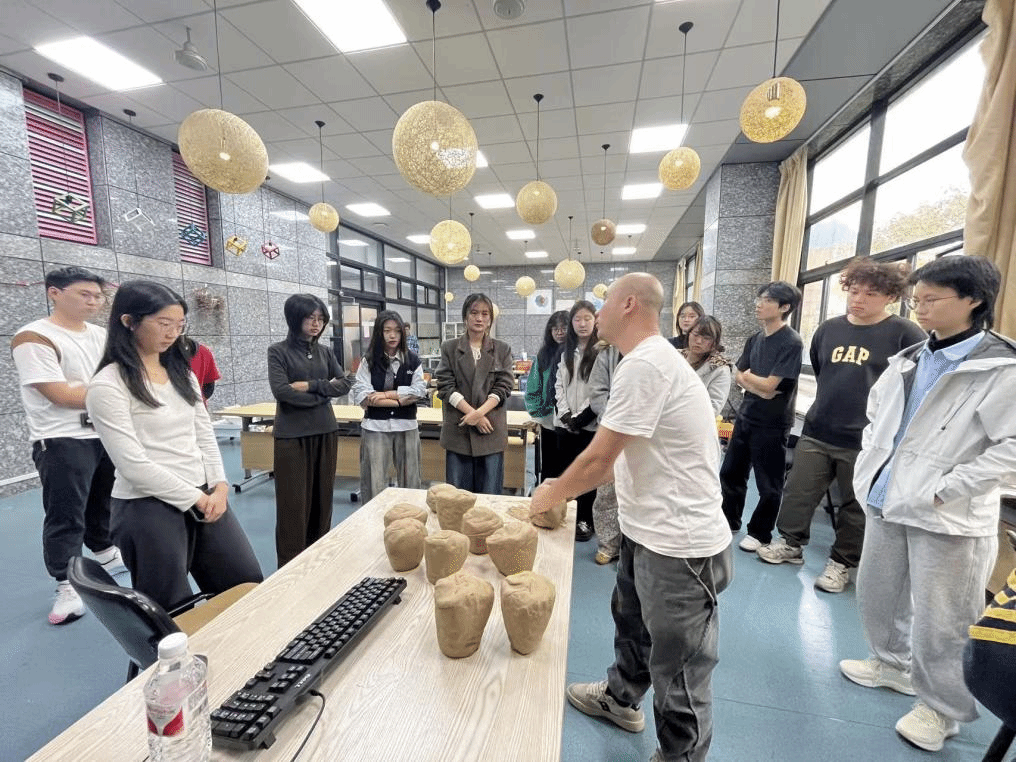 随后,活动进入实践环节。从选土、揉泥到拉坯、修坯,每一步皆是对耐心与技艺的双重考验。在章先生的悉心指导下,同学们亲手抚触陶土,感受其在指尖的细腻变化。
